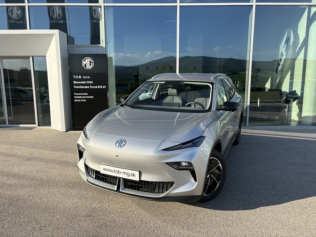 Núdzové udržiavanie v jazdnom pruhu (ELK), Systém varovania pred opustením jazdného pruhu (LDW), Inteligentný obmedzovač rýchlosti (SAS), Asistent pre jazdu v dopravnej kolóne (TJA), Automatické diaľkové svetlá (IHC), Bezdrôtové nabíjanie mobilného telefónu, 6 reproduktorov, Satelitná navigácia, Bezdrôtové pripojenie Apple CarPlay™ / Android Auto™, Plánovač cesty EV, 12,8" HD dotyková obrazovka infotainmentu, Digitálny 10,25" displej vodiča, 4 USB porty (3x vpredu (2x Typ C + 1x Typ A na spätnom zrkadle) + 1x vzadu(1x Typ C)), Príjem digitálneho rozhlasového vysielania (DAB), Systém sledovania pozornosti vodiča (DMS), Centrálny airbag medzi prednými sedadlami, Elektronická parkovacia brzda (vrátane funkcie Autohold), Systém aktívneho riadenia stability (ESP), Núdzový brzdový asistent (EBA), Akustické upozornenie na nezapnutý bezpečnostný pás vodiča, Akustické upozornenie na nezapnutý bezpečnostný pás spolujazdca, Varovanie pred prichádzajúcimi vozidlami pri otváraní dverí (DOW), Predné airbagy pre vodiča a spolujazdca, Senzor tlaku v pneumatikách TPMS (priamy), Bočné airbagy pre vodica a spolujazdca, Bočně závesné airbagy pre vodica a spolujazdca, ABS (protiblokovací systém)& EBD(elektronické rozdelenie brzdnej sily), Bočné hlavové airbagy pre lavú a pravú stranu, Deaktivácia predného a bocného airbagu spolujazdca, 18" zliatinové disky kolies Rotor Style s aerodynamickým krytom kolies, Možnosť miery rekuperácie elektrickej energie (KERS, 4 úrovne), Možnosť využitia vozidla ako záložného zdroja energie (V2L), 360° panoramatická parkovacia kamera, Zadný strešný spojler, Zadné parkovacie senzory, Elektricky nastaviteľné, elektricky sklopné, vyhrievané, čierne vonkajšie spätné zrkadlá, Aktívny systém mriežky chladiča (AGS), Výškovo a pozdĺžne nastaviteľný volant, Slnečná clona u vodiča a spolujazdca, Bluetooth kľúč pre mobilné telefóny, Manuálne prepínateľné vnútorné spätné zrkadlo, Predohrev batérie, Koženný volant, Elektrické ovládanie dverí batožinového priestoru, 5 jazdných režimov (Normálny, Športový, Komfortný, Sneh, Vlastný), Zadné svetlá na čítanie, Jednopedálové ovládanie zrýchľovania a spomaľovania vozidla, Prepojenie s aplikáciou iSmart, Automatická klimatizácia s výduchom ventilácie pre zadné sedadlá na stredovej konzole, Dažďový senzor, Elektrické ovládanie predných a zadných okien, okno vodiča s funkciou AUTO a ochranou proti privretiu, Automatická klimatizácia, Vyhrievaný volant, Dvojfarebné čalúnenie v sivej koži s čalúneným stredom, Zadná stredová lakťová opierka, Sedadlo vodiča s manuálne nastaviteľnou bedrovou opierkou, Sedadlo vodiča elektricky nastaviteľné v 6 smeroch, Sedadlo spolujazdca manuálne nastaviteľné v 4 smeroch, Operadlo zadných sedadiel delené v pomere 60:40, Tretie zadné brzdové LED svetlo, Zadné hmlové svetlo, Full LED Svetlomety, Systém automatického núdzového brzdenia (AEB), Aktívny systém na udržanie jazdného pruhu (LKA), Adaptívny tempomat (ACC) s obmedzovačom rýchlosti, MG Pilot nastaviteľný profil, Sledovanie mŕtveho uhla (BSD), Alarm a systém proti krádeži