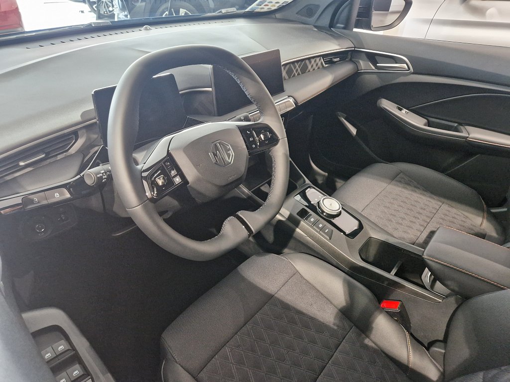 Detekcia pozornosti vodiča (UDW), Automatické diaľkové svetlá (IHC), Aktívny systém na udržanie jazdného pruhu (LKA), Adaptívny tempomat (ACC) s obmedzovačom rýchlosti, Inteligentný obmedzovač rýchlosti (SAS), Systém automatického núdzového brzdenia (AEB), Prehľad stavu vozidla (MG iSMART Lite), 6 reproduktorov, Vstavaná satelitná navigácia, Audiosystém s 10,25" farebným displejom s možnosťou prehrávania MP3, Bluetooth® handsfree, podpora Apple CarPlay™ a Android Auto™, Nájdite svoje vozidlo (MG iSMART Lite), Príjem digitálneho rozhlasového vysielania (DAB+), Diagnostika stavu vozidla (MG iSMART Lite), 7-palcový virtuálny kokpit, Offline navigácia (MG iSMART Lite), Biela - Dover White, Čelné airbagy vodiča a spolujazdca (x2), spínač deaktivácie airbagu spolujazdca, Systém monitorovania premávky pri cúvaní (RCTA), Bočné airbagy vodiča a spolujazdca (x2), hlavové (okenné) airbagy vpredu a vzadu (x2), Varovanie pred zmenou jazdného pruhu (LCW), Antiblokovací brzdový systém (ABS), Alarm - elektronické zabezpečenie, Systém monitorovania mrtveho uhla (BSD), Elektronický systém rozdelenia brzdného účinku (EBD), Elektronický imobilizér, Systém varovania pred čelnou zrážkou (FCW) s detekciou cyklistov aj chodcov, Asistent pre udržiavanie v jazdnom pruhu v núdzi (ELK), Inteligentný tempomat (ICA), Systém aktívneho riadenia stability (ESP), Vysoko umiestnené brzdové svetlo, Systém monitorovania tlaku v pneumatikách (TPMS), Detská poistka zámkov zadných dverí, Núdzový brzdový asistent (EBA), Asistent rozjazdu do kopca (HHC), Systém núdzového privolania pomocou E-call, Ukotvenie detskej bezpecnostnej sedacky ISOFIX (v druhom rade sedadiel) (x2), Zamknutie a odomknutie vozidla (MG iSMART Lite), 16" zliatinové disky + pneumatiky 195/65R16, Vyhrievanie spätných zrkadiel, Spätné zrkadlá s ukazovateľmi smeru, Zadný stierač, Zadné parkovacie senzory, Elektricky nastaveiteľné spätné zrkadlá, Spätné zrkadlá vo farbe karosérie, Vyhrievané zadné sklo, Tónované sklá, Automatické sklápanie spätných zrkadiel, 360° panoramatická parkovacia kamera, Elektrické ovládanie predných a zadných okien, Elektrická zásuvka 12V na prednom paneli (x1), Ochrana okna vodiča proti otvoreniu, Osvetlenie batožinového priestoru, Stredová lakťová opierka vpredu s úložným priestorom, Volant obšitý kožou z mikrovlákna, Funkcia automatického zamykania dverí, Multifunkčný volant, Prémiový dekoračný panel dverí, Slnečná clona u vodiča a spolujazdca s osvetleným kozmetickým zrkadlom, Čierna farba interiéru, Tlačidlo motora START/STOP, Bezkľučové odomykanie, Elektronický volič jazdných režimov, Dažďový senzor, Automatická klimatizácia, Elektrická parkovacia brzda (EPB) s funkciou Auto Hold (iba pre AT), Zadné výduchy klimatizácie, Vyhrievaný volant, Klimatizácia s filtrom PM2,5, Integrované sklopné zadné sedadlá, Sedadlo vodiča manuálne nastaviteľné v 6 smeroch, Čalúnenie sedadiel z látky/syntetickej kože, Vyhrievanie predných sedadiel, Sedadlo spolujazdca manuálne nastaviteľné v 4 smeroch, LED svetlá pre denné svietenie, Senzor automatického rozsvätenia svetiel, Funkcia svetlometov Follow me home, Zadné hmlové svetlo, Predné LED svetlomety s manuálnym nastavovaním sklonu