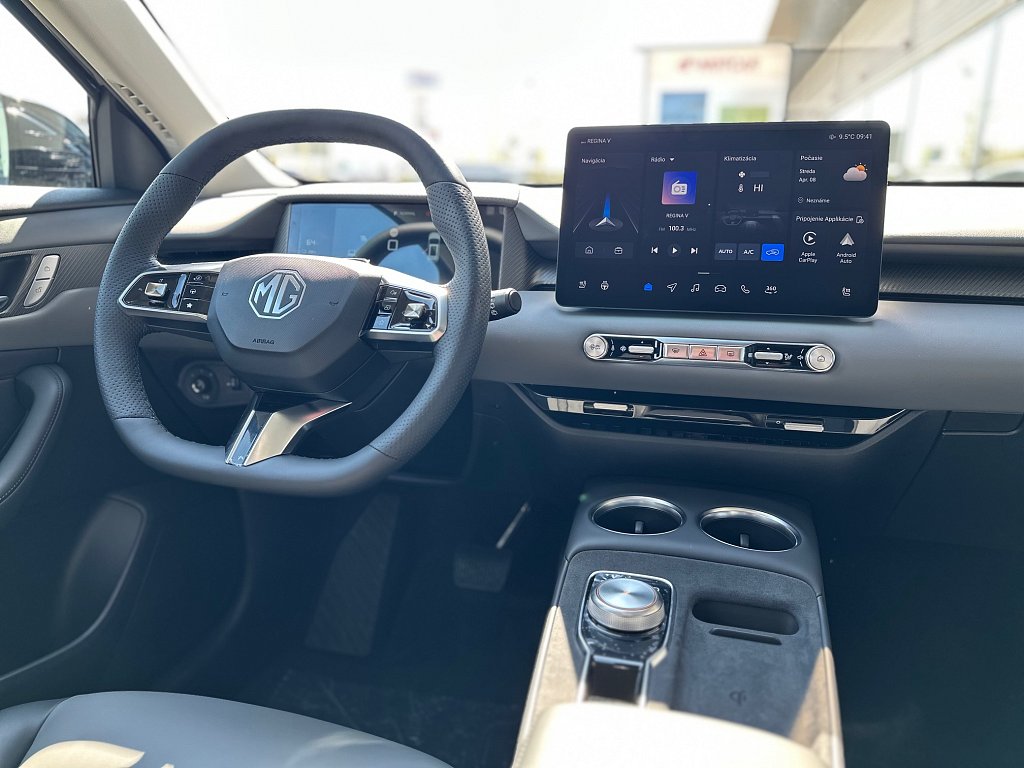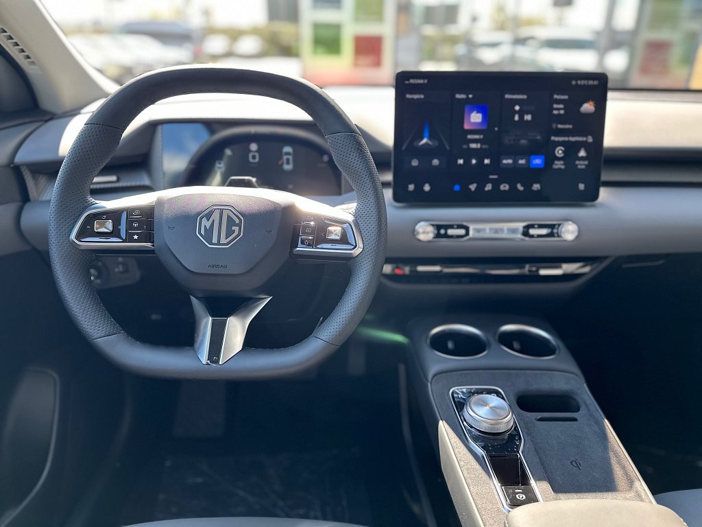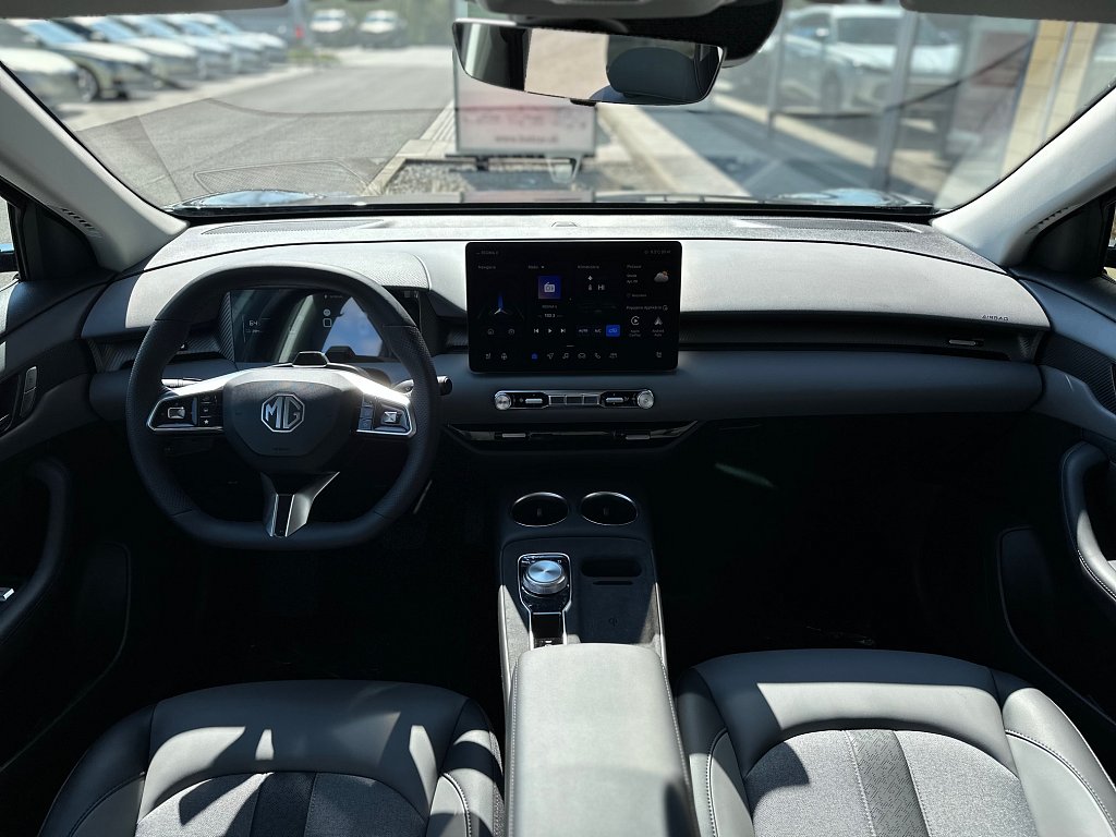 Núdzové udržiavanie v jazdnom pruhu (ELK), Systém varovania pred opustením jazdného pruhu (LDW), Inteligentný obmedzovač rýchlosti (SAS), Asistent pre jazdu v dopravnej kolóne (TJA), Automatické diaľkové svetlá (IHC), Bezdrôtové nabíjanie mobilného telefónu, 6 reproduktorov, Satelitná navigácia, Bezdrôtové pripojenie Apple CarPlay™ / Android Auto™, Plánovač cesty EV, 12,8" HD dotyková obrazovka infotainmentu, Digitálny 10,25" displej vodiča, 4 USB porty (3x vpredu (2x Typ C + 1x Typ A na spätnom zrkadle) + 1x vzadu(1x Typ C)), Príjem digitálneho rozhlasového vysielania (DAB), Systém sledovania pozornosti vodiča (DMS), Centrálny airbag medzi prednými sedadlami, Elektronická parkovacia brzda (vrátane funkcie Autohold), Systém aktívneho riadenia stability (ESP), Núdzový brzdový asistent (EBA), Akustické upozornenie na nezapnutý bezpečnostný pás vodiča, Akustické upozornenie na nezapnutý bezpečnostný pás spolujazdca, Varovanie pred prichádzajúcimi vozidlami pri otváraní dverí (DOW), Predné airbagy pre vodiča a spolujazdca, Senzor tlaku v pneumatikách TPMS (priamy), Bočné airbagy pre vodica a spolujazdca, Bočně závesné airbagy pre vodica a spolujazdca, ABS (protiblokovací systém)& EBD(elektronické rozdelenie brzdnej sily), Bočné hlavové airbagy pre lavú a pravú stranu, Deaktivácia predného a bocného airbagu spolujazdca, 18" zliatinové disky kolies Rotor Style s aerodynamickým krytom kolies, Možnosť miery rekuperácie elektrickej energie (KERS, 4 úrovne), Možnosť využitia vozidla ako záložného zdroja energie (V2L), 360° panoramatická parkovacia kamera, Zadný strešný spojler, Zadné parkovacie senzory, Elektricky nastaviteľné, elektricky sklopné, vyhrievané, čierne vonkajšie spätné zrkadlá, Aktívny systém mriežky chladiča (AGS), Výškovo a pozdĺžne nastaviteľný volant, Slnečná clona u vodiča a spolujazdca, Bluetooth kľúč pre mobilné telefóny, Manuálne prepínateľné vnútorné spätné zrkadlo, Predohrev batérie, Koženný volant, Elektrické ovládanie dverí batožinového priestoru, 5 jazdných režimov (Normálny, Športový, Komfortný, Sneh, Vlastný), Zadné svetlá na čítanie, Jednopedálové ovládanie zrýchľovania a spomaľovania vozidla, Prepojenie s aplikáciou iSmart, Automatická klimatizácia s výduchom ventilácie pre zadné sedadlá na stredovej konzole, Dažďový senzor, Elektrické ovládanie predných a zadných okien, okno vodiča s funkciou AUTO a ochranou proti privretiu, Automatická klimatizácia, Vyhrievaný volant, Dvojfarebné čalúnenie v sivej koži s čalúneným stredom, Zadná stredová lakťová opierka, Sedadlo vodiča s manuálne nastaviteľnou bedrovou opierkou, Sedadlo vodiča elektricky nastaviteľné v 6 smeroch, Sedadlo spolujazdca manuálne nastaviteľné v 4 smeroch, Operadlo zadných sedadiel delené v pomere 60:40, Tretie zadné brzdové LED svetlo, Zadné hmlové svetlo, Full LED Svetlomety, Systém automatického núdzového brzdenia (AEB), Aktívny systém na udržanie jazdného pruhu (LKA), Adaptívny tempomat (ACC) s obmedzovačom rýchlosti, MG Pilot nastaviteľný profil, Sledovanie mŕtveho uhla (BSD), Alarm a systém proti krádeži