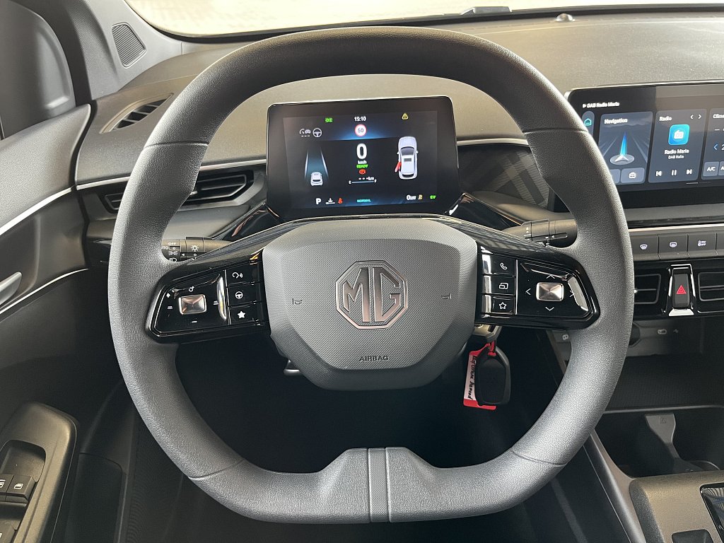 Detekcia pozornosti vodiča (UDW), Automatické diaľkové svetlá (IHC), Aktívny systém na udržanie jazdného pruhu (LKA), Adaptívny tempomat (ACC) s obmedzovačom rýchlosti, Inteligentný obmedzovač rýchlosti (SAS), Systém automatického núdzového brzdenia (AEB), Prehľad stavu vozidla (MG iSMART Lite), Vstavaná satelitná navigácia, Audiosystém s 10,25" farebným displejom s možnosťou prehrávania MP3, Bluetooth® handsfree, podpora Apple CarPlay™ a Android Auto™, Nájdite svoje vozidlo (MG iSMART Lite), 4 reproduktory, Príjem digitálneho rozhlasového vysielania (DAB+), Diagnostika stavu vozidla (MG iSMART Lite), 7-palcový virtuálny kokpit, Offline navigácia (MG iSMART Lite), Biela - Dover White, Čelné airbagy vodiča a spolujazdca (x2), spínač deaktivácie airbagu spolujazdca, Bočné airbagy vodiča a spolujazdca (x2), hlavové (okenné) airbagy vpredu a vzadu (x2), Antiblokovací brzdový systém (ABS), Alarm - elektronické zabezpečenie, Elektronický systém rozdelenia brzdného účinku (EBD), Elektronický imobilizér, Systém varovania pred čelnou zrážkou (FCW) s detekciou cyklistov aj chodcov, Asistent pre udržiavanie v jazdnom pruhu v núdzi (ELK), Inteligentný tempomat (ICA), Systém aktívneho riadenia stability (ESP), Vysoko umiestnené brzdové svetlo, Systém monitorovania tlaku v pneumatikách (TPMS), Detská poistka zámkov zadných dverí, Núdzový brzdový asistent (EBA), Asistent rozjazdu do kopca (HHC), Systém núdzového privolania pomocou E-call, Ukotvenie detskej bezpecnostnej sedacky ISOFIX (v druhom rade sedadiel) (x2), Zamknutie a odomknutie vozidla (MG iSMART Lite), 15" ocelové disky + pneumatiky 185/65R15, Súprava na núdzovú opravu pneumatík, Spätné zrkadlá s ukazovateľmi smeru, Zadné parkovacie senzory, Elektricky nastaveiteľné spätné zrkadlá, Spätné zrkadlá vo farbe karosérie, Vyhrievané zadné sklo, Zadná parkovacia kamera s dynamickými navádzacími líniami, Elektrické ovládanie predných a zadných okien, Elektrická zásuvka 12V na prednom paneli (x1), Ochrana okna vodiča proti otvoreniu, Osvetlenie batožinového priestoru, Volant z PU, Stredová lakťová opierka vpredu s úložným priestorom, Slnečná clona u vodiča a spolujazdca, Funkcia automatického zamykania dverí, Multifunkčný volant, Čierna farba interiéru, Elektronický volič jazdných režimov, Dažďový senzor, Automatická klimatizácia, Elektrická parkovacia brzda (EPB) s funkciou Auto Hold (iba pre AT), Klimatizácia s filtrom PM2,5, Látkové čalúnenie sedadiel, Integrované sklopné zadné sedadlá, Sedadlo vodiča manuálne nastaviteľné v 6 smeroch, Sedadlo spolujazdca manuálne nastaviteľné v 4 smeroch, LED svetlá pre denné svietenie, Senzor automatického rozsvätenia svetiel, Funkcia svetlometov Follow me home, Zadné hmlové svetlo, Predné halogénové svetlomety a manuálnym nastavovaním sklonu, Výškovo a pozdĺžne nastaviteľný volant, Štart/Stop systém, LED vysoko umiestnené brzdové svetlo, Satelitná navigácia, Infotainment s 10,25" farebným displejom