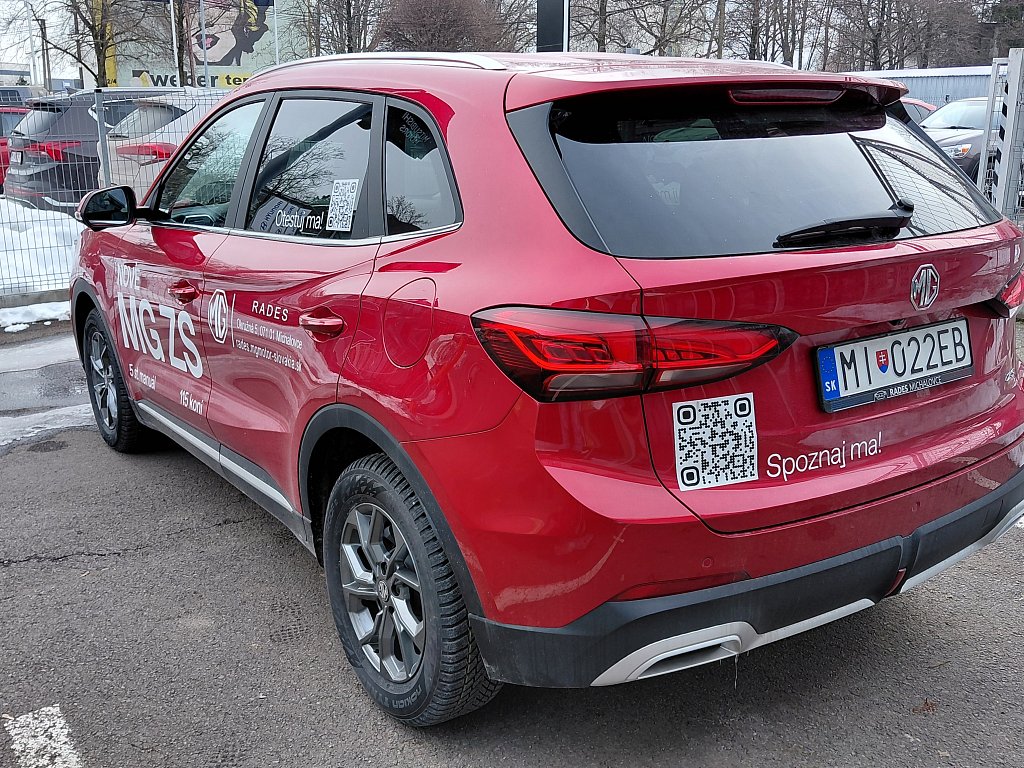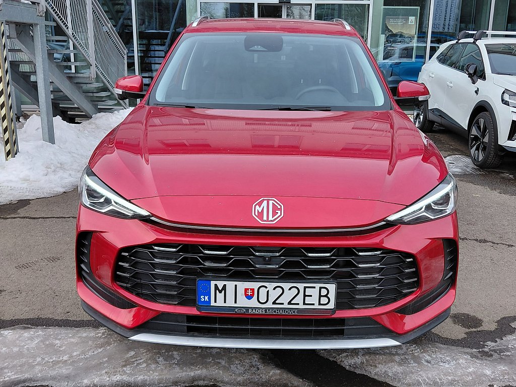 BEZPEČNOSŤ, Štart/Stop systém, Výškovo a pozdĺžne nastaviteľný volant, Mechanická ručná brzda, Systém E-CALL, Senzor tlaku v pneumatikách TPMS, Zadné sedadlo ISOFIX s horným a dolným upevnením, Alarm a systém proti krádeži, Predné airbagy pre vodiča a spolujazdca, Bočné airbagy pre vodiča a spolujazdca, Prepínač bočného airbagu pre spolujazdca, Obmedzovač rýchlosti, Zadná kamera, Zadné parkovacie senzory, Bočne závesné airbagy pre vodiča a spolujazdca, Upozornenie na čelné kolízie (FCW), MG PILOT, Automatické núdzové brzdenie (AEB), Upozornenie na opustenie jazdného pruhu (LDW), Asistencia pri udržiavaní v jazdnom pruhu (LKA), Systém pomoci pri dodržiavaní rýchlosti (SAS), Upozornenie na ospalosť (UDW), Núdzové udržanie v jazdnom pruhu (ELK), Asistencia pri zmene jazdného pruhu (LCA), Sledovanie mŕtveho uhla (BSD), Upozornenie na križovanie cestnej premávky zozadu (RCTA), EXTERIÉR, Vyhrievané vonkajšie spätné zrkadlá, Strešné nosiče, Dažďový senzor, Elektricky ovládané sklopné vonkajšie spätné zrkadlá, Hlinikove disky 17'' (215/55 R17), INTERIÉR A POHODLIE, Prístup bez kľúča, Elektricky nastaviteľné sedadlo vodiča v 6 smeroch, Vyhrievané predné sedadlá, Čalúnenie sedadiel v eko koži, 360° parkovacia kamera, Sedadlo vodiča s manuálnym nastavením bedrovej opierky, Dotykovy displej 12,3'', 6 reproduktorov, Vrecká na zadnej strane predných sedadiel