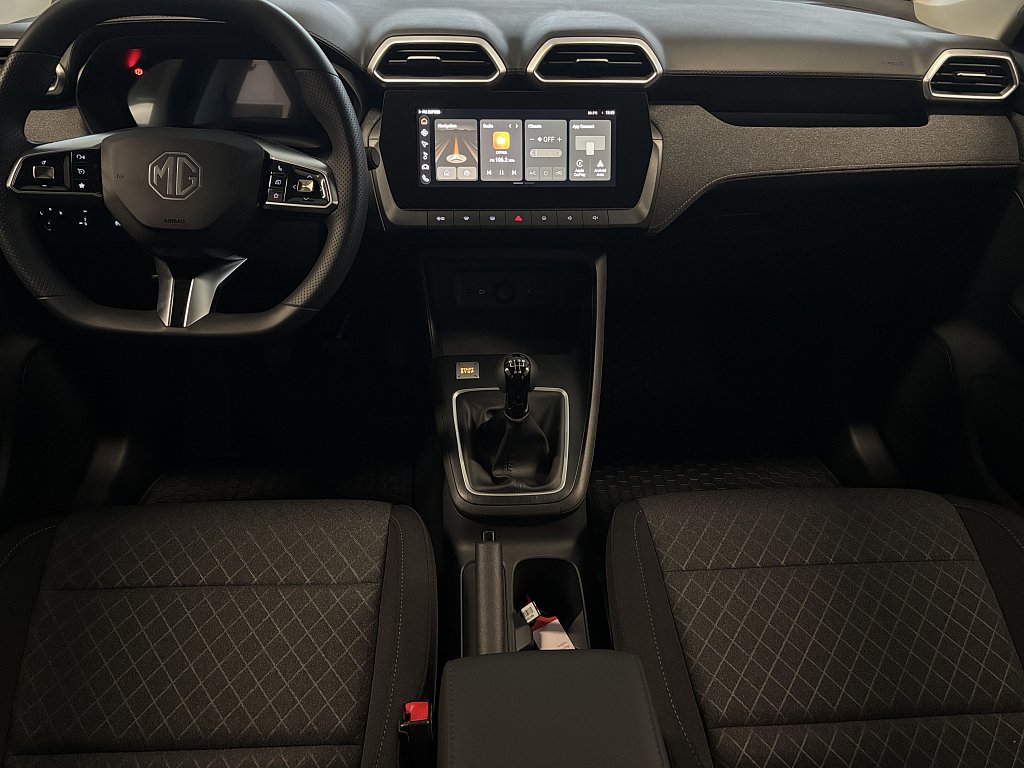 BEZPEČNOSŤ, Štart/Stop systém, Výškovo a pozdĺžne nastaviteľný volant, Mechanická ručná brzda, Systém E-CALL, Senzor tlaku v pneumatikách TPMS, Zadné sedadlo ISOFIX s horným a dolným upevnením, Alarm a systém proti krádeži, Predné airbagy pre vodiča a spolujazdca, Bočné airbagy pre vodiča a spolujazdca, Prepínač bočného airbagu pre spolujazdca, Obmedzovač rýchlosti, Zadná kamera, Zadné parkovacie senzory, Bočne závesné airbagy pre vodiča a spolujazdca, MG PILOT, Upozornenie na čelné kolízie (FCW), Automatické núdzové brzdenie (AEB), Upozornenie na opustenie jazdného pruhu (LDW), Asistencia pri udržiavaní v jazdnom pruhu (LKA), Systém pomoci pri dodržiavaní rýchlosti (SAS), Upozornenie na ospalosť (UDW), Núdzové udržanie v jazdnom pruhu (ELK), Asistencia pri zmene jazdného pruhu (LCA), Sledovanie mŕtveho uhla (BSD), Upozornenie na križovanie cestnej premávky zozadu (RCTA), INTERIÉR A POHODLIE, Predná stredová opierka s uložným priestorom, Digitálna klimatizácia, Elektrické okna vpredu a vzadu, Štartovanie bez kľúča, Vodičovo sedadlo nastaviteľné v 6 smeroch, Sedadlo spolujazdca nastaviteľné v 4 smeroch, Sklopné zadné sedadlo v pomere 60:40, Digitálny 7'' prístrojový panel, Dotykový displej 10,25'', Rádio AM/FM/DAB+, Navigačný systém, Apple CarplayTM / Android AutoTM, 4 reproduktory, 2 USB porty, SVETLÁ, LED denné svietenie, Halogénové svetlomety, LED zadné svetlá, Svetelný senzor